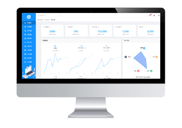 用于统计系统内的各类数据,包括用户数量、预约数量、销售额等统计分析。